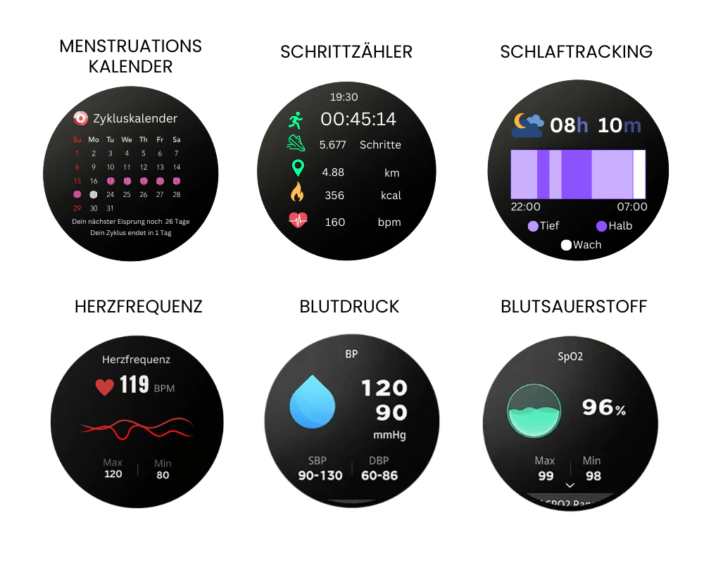 Vielseitige Gesundheits- und Fitnessfunktionen Deine Smartwatch ist mehr als nur ein Zeitmesser – sie ist ein umfassendes Werkzeug zur Überwachung deiner Gesundheit und Fitness.