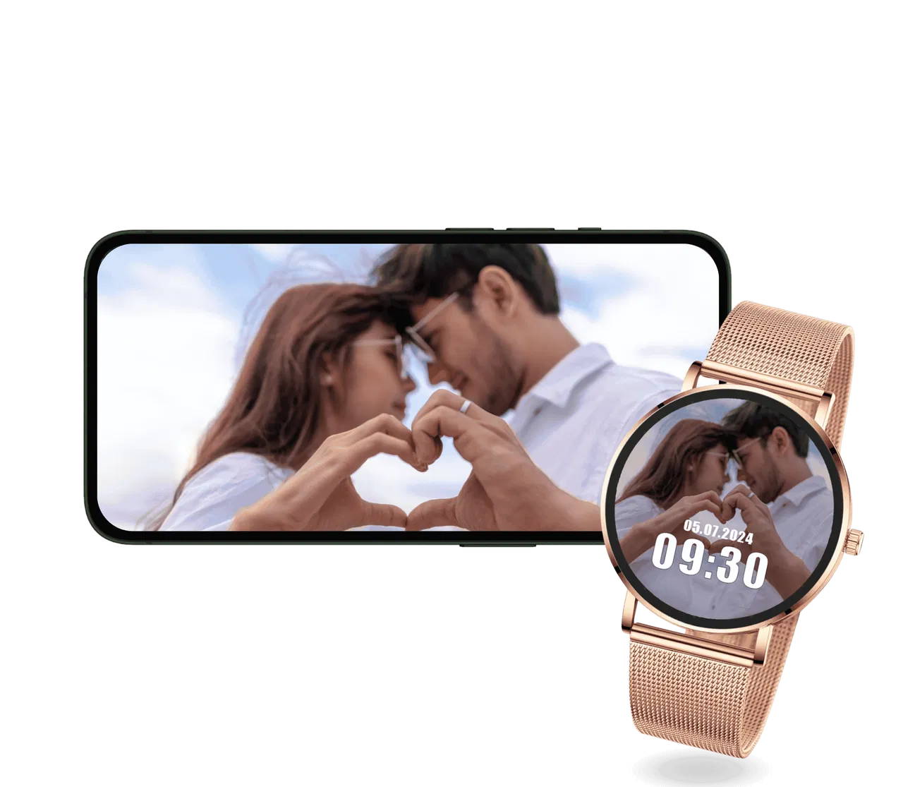 - 100+ Watchfaces: Stil wechseln in Sekunden – klassisch, sportlich oder mit Foto.
